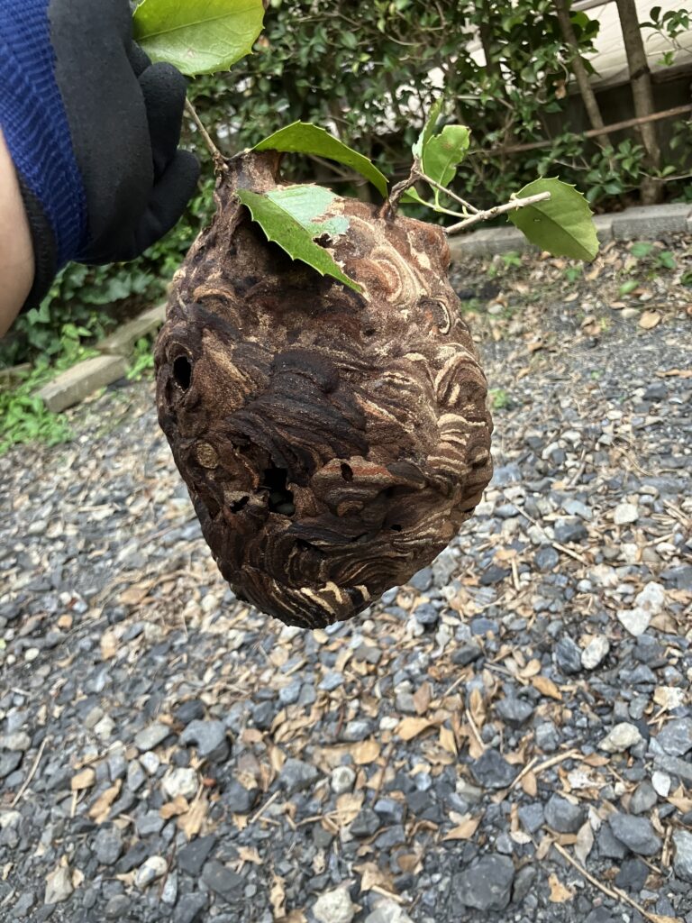 とはいえこの大きさ。相当な数のスズメバチが飛び交っていたかと思うとゾッとします。