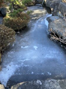 寒い! 寒波の訪れた関東を離れて、本日は長野県茅野市でネズミの調査です。 雪は無いもののやっぱり寒い。 庭の池も凍ってましたw 作業も気合い入れて頑張ります!